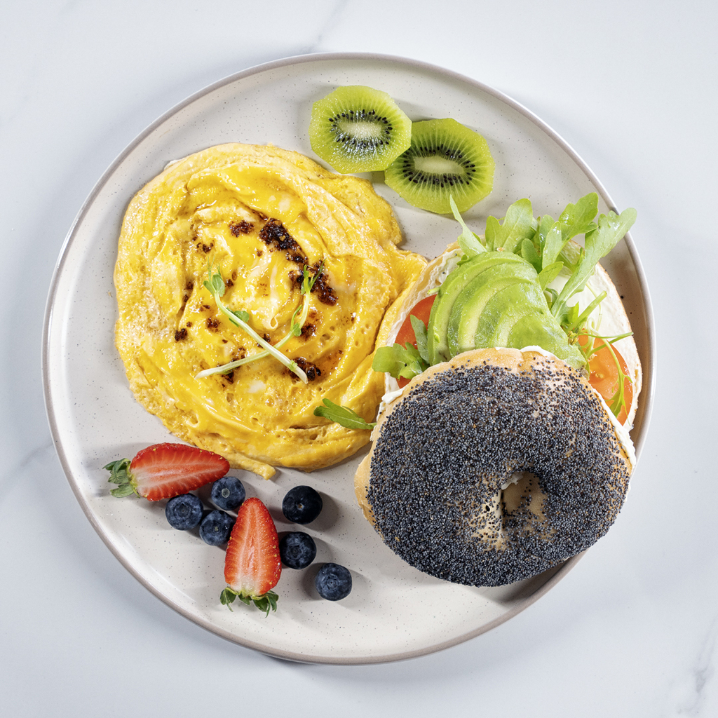 A wholesome favourite - sourdough bagel made in our own bakery with creamy smashed avacado, fresh tomatoes and arugula, finished with our house dressing.